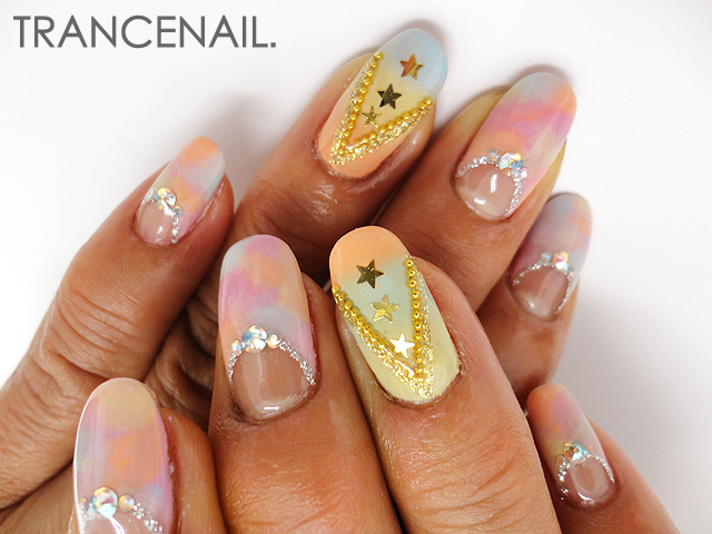 NUDY COLOR こんにちは♬ お客様ネイルのご紹介です。 ヌーディーなベージュカラーをベースに、変形ピーコックを描きました☆ ゴールドのリーフ型スタッズをアクセントに加えて、 夏のリゾートに似合いそうな仕上がりになっています♪ 参考価格¥11,000(税込・リムーブ別) ★新規のお客様は上記価格より20%OFFです★