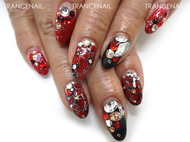 赤い花びら こんにちは♪ お客様ネイルのご紹介です。 赤い花びらを散りばめたエレガントなデザイン。 華やかなビジューと黒のコントラストもステキです♥ ★参考価格(税込)¥13,500 ※オフは別途1本200円です。 ★新規のお客様は上記価格より20%OFFです。 ★ご予約はお電話(0797-75-7366)または予約フォームより受け付けております。 ★空席情報はこちらからご覧ください。