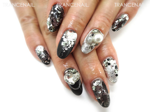 ブラックベースのレース柄を描いたセクシーなデザイン。