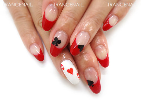 キング×クイーン こんにちは♪ お客様ネイルのご紹介です。 トランプをモチーフにしたレッドフレンチ。 親指のキングとクイーンをメインに製作しました♬ ★参考価格(税込)¥12,000 ※オフは別途1本200円です。 ★新規のお客様は上記価格より20%OFFです。 ★ご予約はお電話(0797-75-7366)または予約フォームより受け付けております。 ★空席情報はこちらからご覧ください。 ★サロンの衛生対策はこちらからご覧ください。