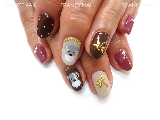 シュナウザー こんにちは♪ お客様ネイルのご紹介です。 ミニチュア・シュナウザーを描いたアイコニックなネイル。 金色のトンボも季節感があって素敵です♥ ★参考価格(税込)¥10,500 ※オフは別途1本200円です。 ★新規のお客様は上記価格より20%OFFです。 ★ご予約は、お電話(0797-75-7366)または予約フォームより受け付けております。 ★空席情報はこちらからご覧ください。 ★サロンの衛生対策はこちらからご覧ください。