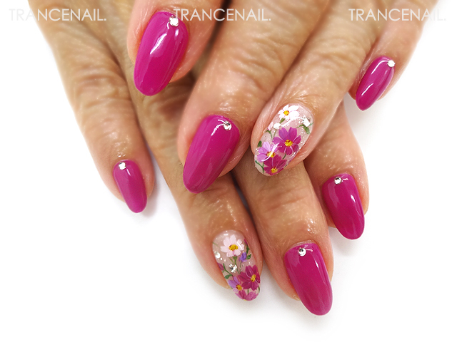 マゼンダ こんにちは♪ お客様ネイルのご紹介です。 マゼンダベースにコスモスのイラストをミックスしました^^ 艶やかですっきりとしたデザインです☆ ★参考価格(税込)¥9,500 ※オフは別途1本200円です。 ★新規のお客様は上記価格より20%OFFです。 ★ご予約はお電話(0797-75-7366)または予約フォームより受け付けております。 ★空席情報はこちらからご覧ください。 ★サロンの衛生対策はこちらからご覧ください。