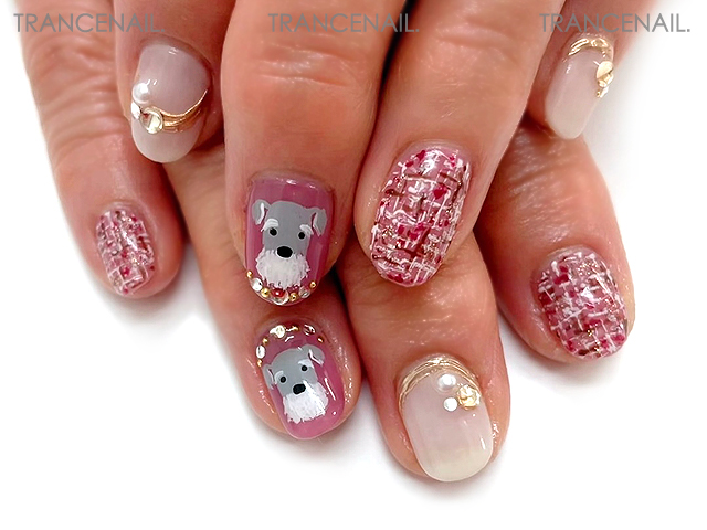 ワンちゃん×ツイード こんにちは♪ お客様ネイルのご紹介です。 ワンちゃんとピンクツイードをミックスしました。 アイコニックでとっても可愛いです☆ ★参考価格(税込)¥10,300 ※オフは別途1本200円です。 ★新規のお客様は上記価格より20%OFFです。 ★ご予約はお電話(0797-75-7366)または予約フォームより受け付けております。 ★空席情報はこちらからご覧ください。 ★サロンの衛生対策はこちらからご覧ください。